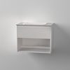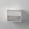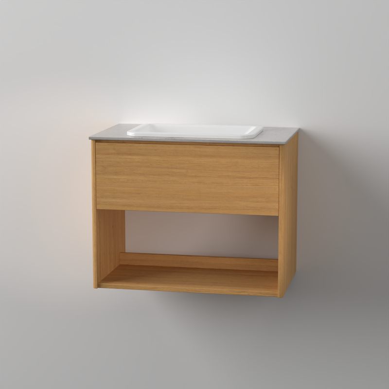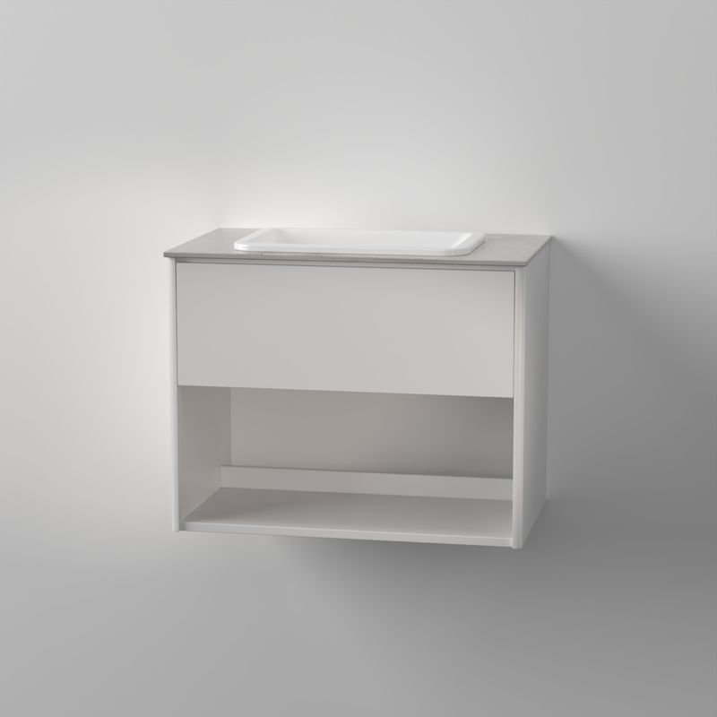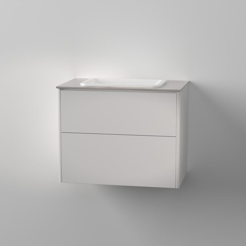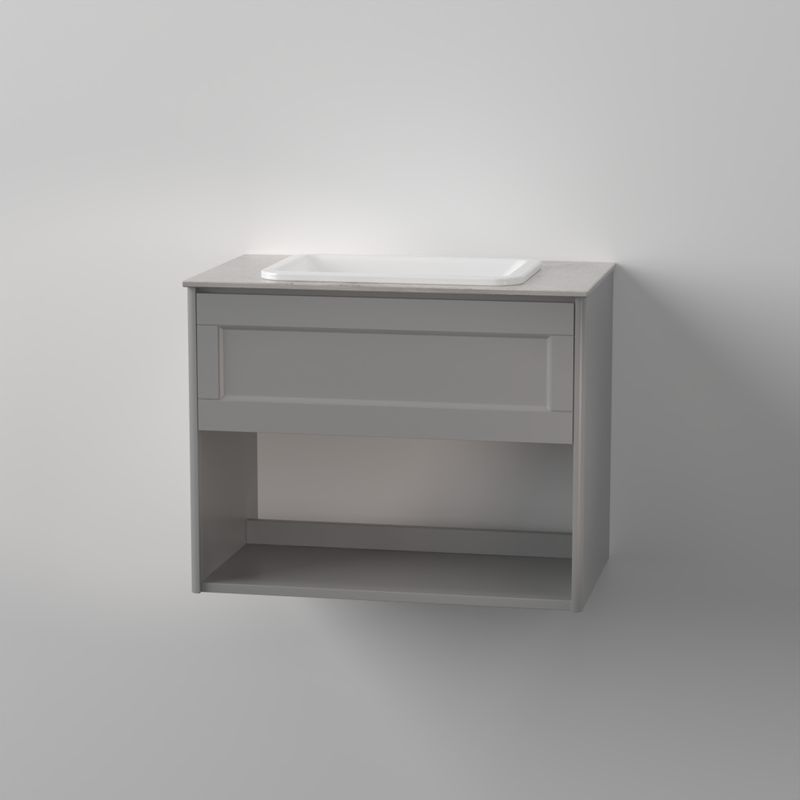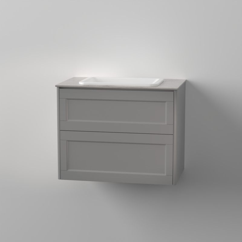 Stenskiva: 1st centrerat nersänkt tvättställ, 1st centrerat blandarhål | nersänkt tvättställ: Villeroy & Boch, överfyllnadsskydd, bassängmått: B450xD280, produktmått: B510xD340xH170 | Ingår ej bottenventil | Avsedd för: Gripen/Eran Kommod 80 | Mått på stenskiva är angivet utan tvättställ | Stenskiva typ: Granitkeramik Concrete grå