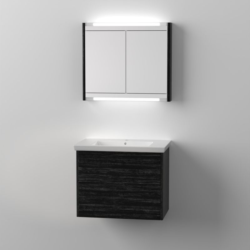 Stenskiva 80 med underlimmat tvättställ Dekton Domoos (svart)/vit porslin