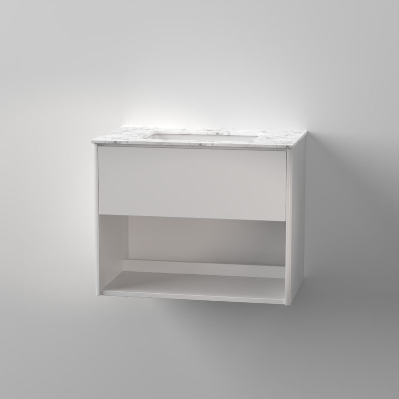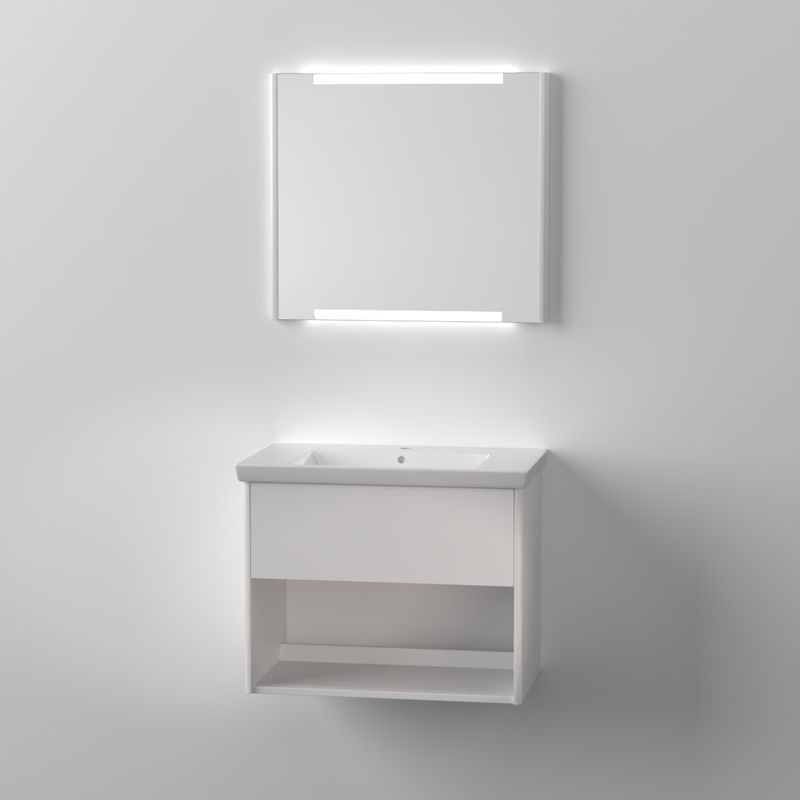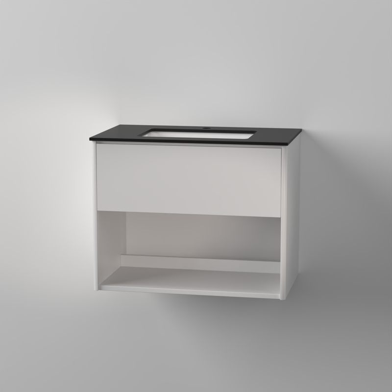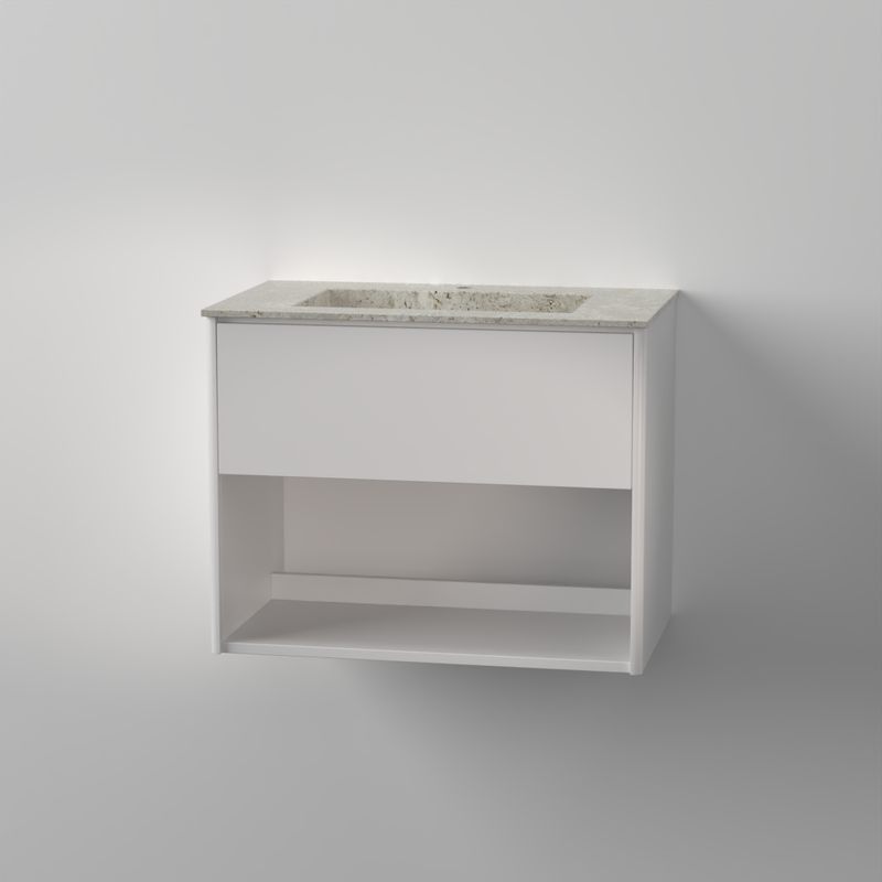 Modell med övre låda & nedre öppen hylla | Ingår: vattenlås, 1st lådinsats | Beställs separat: tvättställ Avento, tvättställ Subway 3.0, stenskiva med tvättställ | Tillval: beslag/pushfunktion låda, eluttag för låda, extra lådinsats| Mått på kommod är angivet med tvättställ | Mått enbart kommod B764xH600xD451mm | Mått kommod med tvättställ B800xH660xD470mm | Mått kommod med stenskiva B774xH612xD460mm